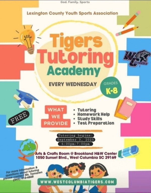 The Lexington County Youth Sports Association (LCYSA) and the West Columbia Tigers (WCT) is a non-profit dedicated to providing safe, constructive programs that empower the youth in our communities. Their mission is to support young individuals in academics and athletics by offering opportunities for growth, exposure, and development.